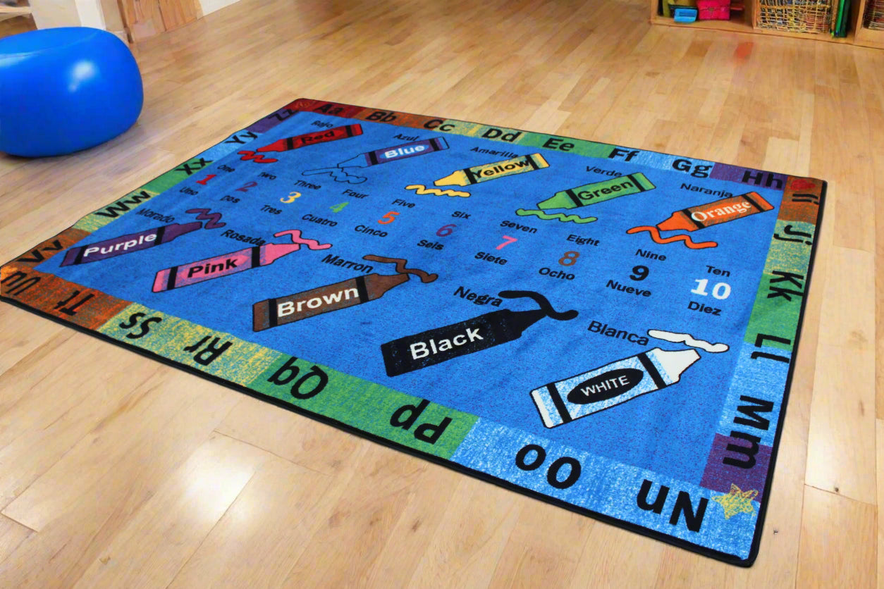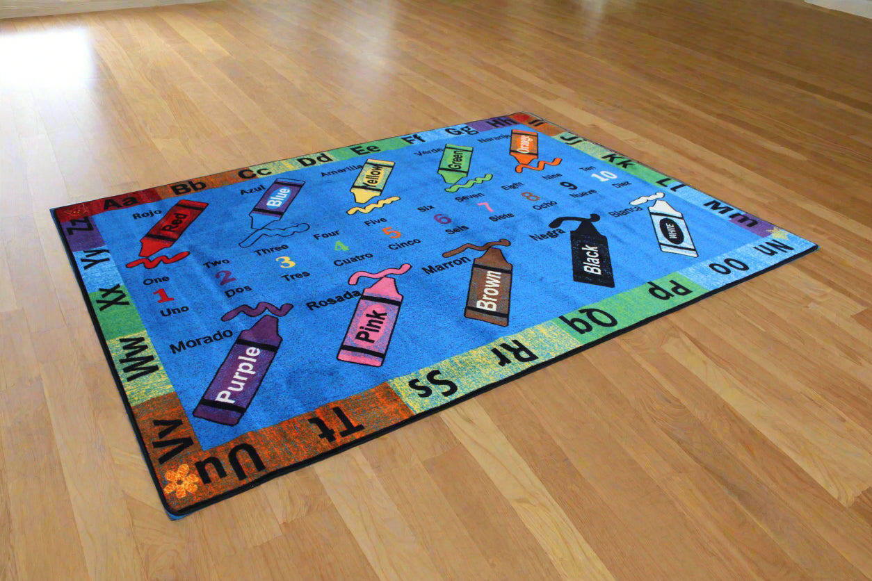 Crayons Bilingual Educational Area Rug with Poster 7'6" x 10'