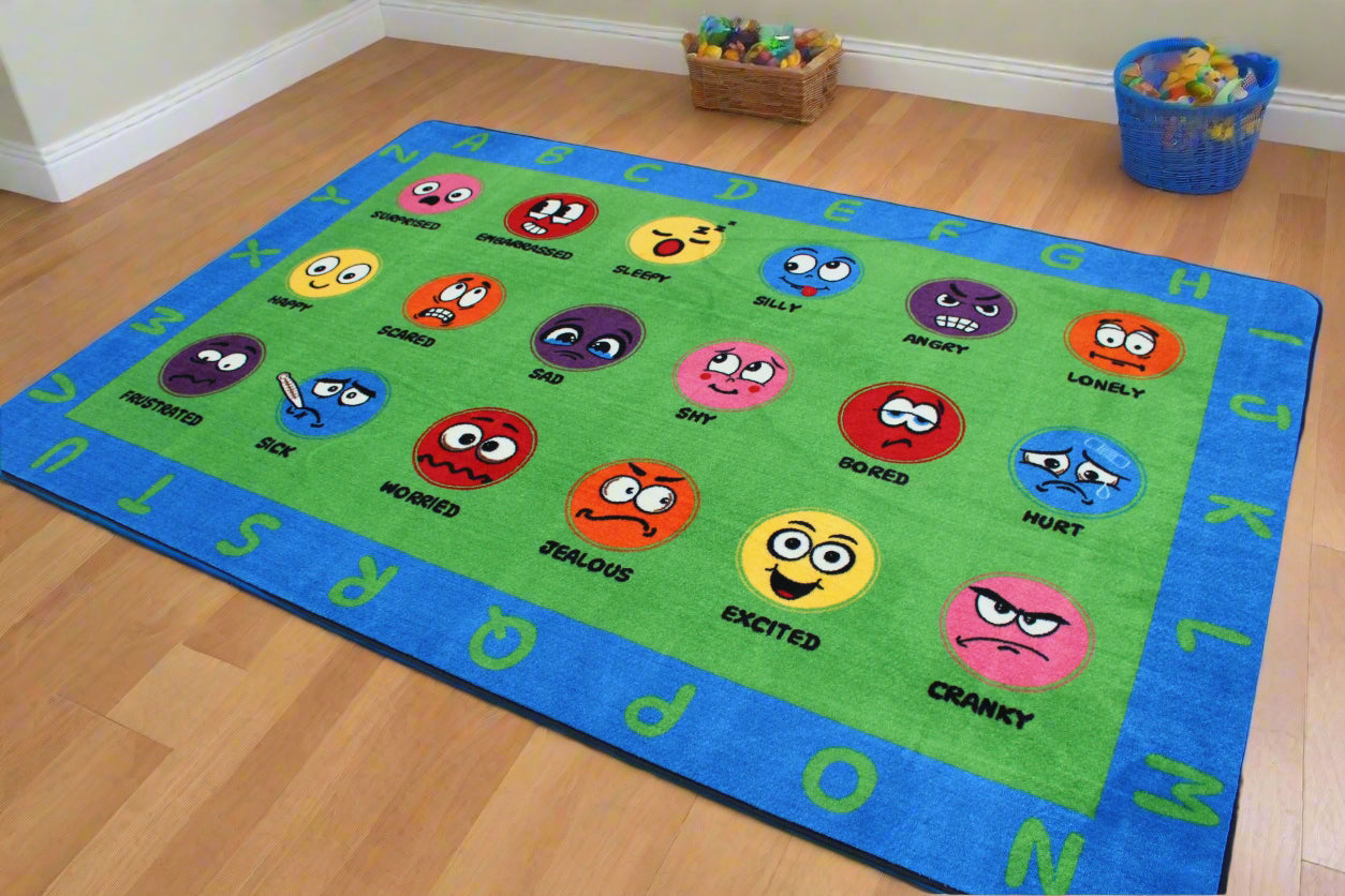 Our How Are You Feeling educational classroom area rug is a wonderful tool for teaching emotional awareness and fostering social-emotional learning. Featuring colorful illustrations of different emotions with corresponding facial expressions, this rug helps children identify and express their feelings in a supportive way. Perfect for group discussions, circle time, or calming corners, it creates a safe space for emotional growth and communication.